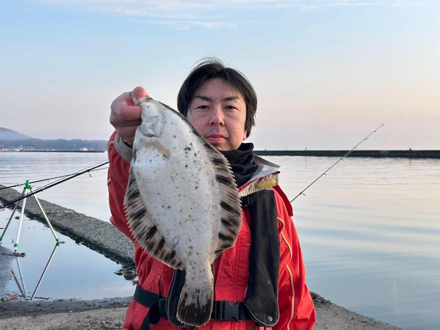 開始早々から良いアタリで力強く上がってきたのはクロガレイ36cm。