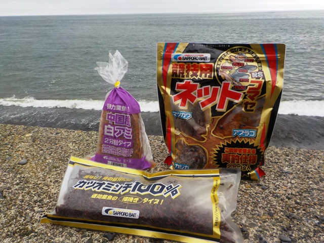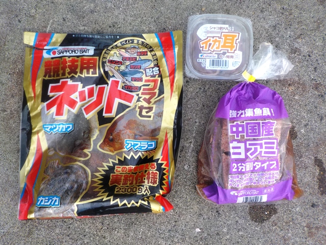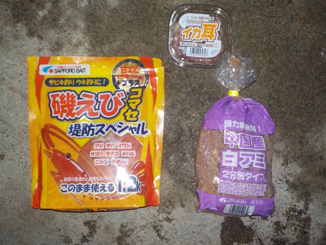 中国産白アミと磯えびコマセ(今回はサバも狙ってみる予定なので磯えびコマセを使用しました)