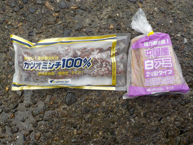 丸セイゴ15号ネット仕掛けに餌は塩イソメ コマセは中国産白アミ