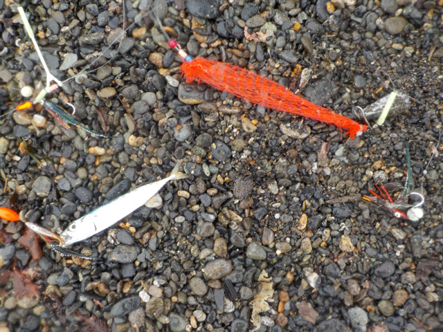 その後さらにエサ取りがひどくなりたまに針掛かりする15センチ級の小サバも