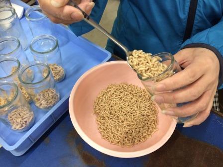 Lさし虫 瓶詰め作業