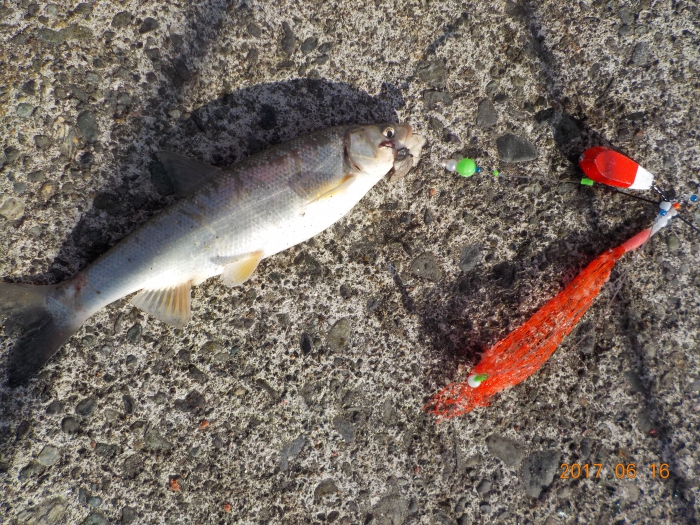なかなかアタリは来ず やっと魚が来たのは午前7時半 外道・・32センチのアカハラだった |