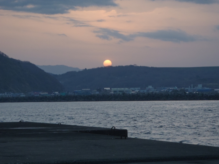 4月23日(火)の20時頃札幌をマイクロバスにて出発、瀬棚に到着したのは翌24日(水)の午前1時半頃でした。舟渡が始まるのは午前3時からなのでそれまで少し仮眠を取ります。 しかし・・・天気予報の通りに風が強い状態、今回上陸予定となっている瀬棚沖北防波堤は他の沖防波堤よりも低い場所があったり波の影響を受けやすい位置にあり、事前に船長さんからは渡れない時の覚悟だけはしておいてくれと言われていました。参加者は皆北防波堤に渡れるようにと祈りながら時間を待ちます。