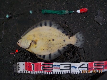 開始早々 全ての竿のセットが終わる前にマツカワヒット!