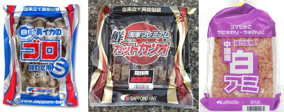 喰わせエサは「カットカツオ競技用血合漬け」「真イカのゴロ S」コマセは「中国産白アミブロック」。
