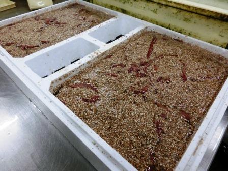 パック詰め商品も入荷時と同じ様に海水で湿らせた蛭石に入れます。