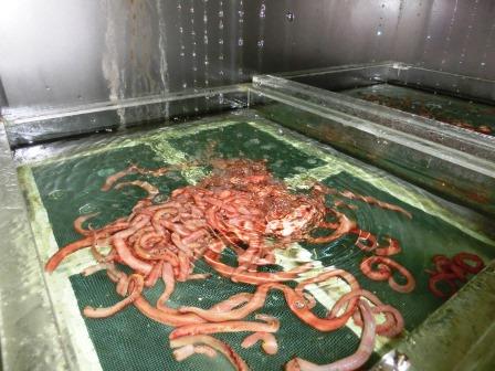 その後、蛭石を洗い、蓄養器で保管、管理します。(写真③④)
