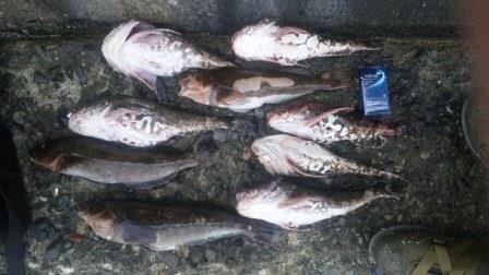 1投げ目から早速ゴンゴンとカジカらしいアタリがきて40㌢と好調スタート。その後もペース良くカジカは続く、エサはイカゴロがよく30~41㌢と中型中心で35㌢以下はリリースしながら。