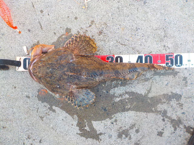 まずまずの重さで来たのは2キロを優に超える腹太カジカ