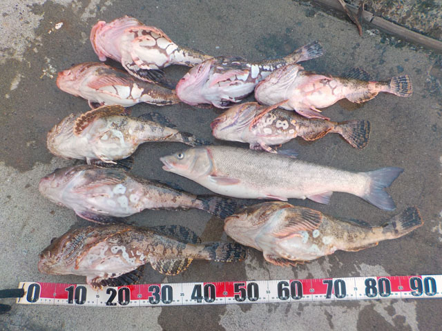ここではカジカ35~49センチ10匹(うち40センチ未満の6匹はリリース) アカハラ1匹でした