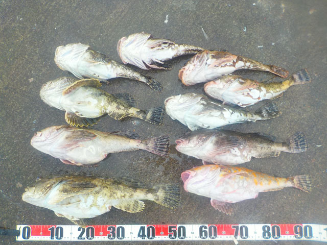 夕暮れまで釣れ続けここではカジカ30匹ほど